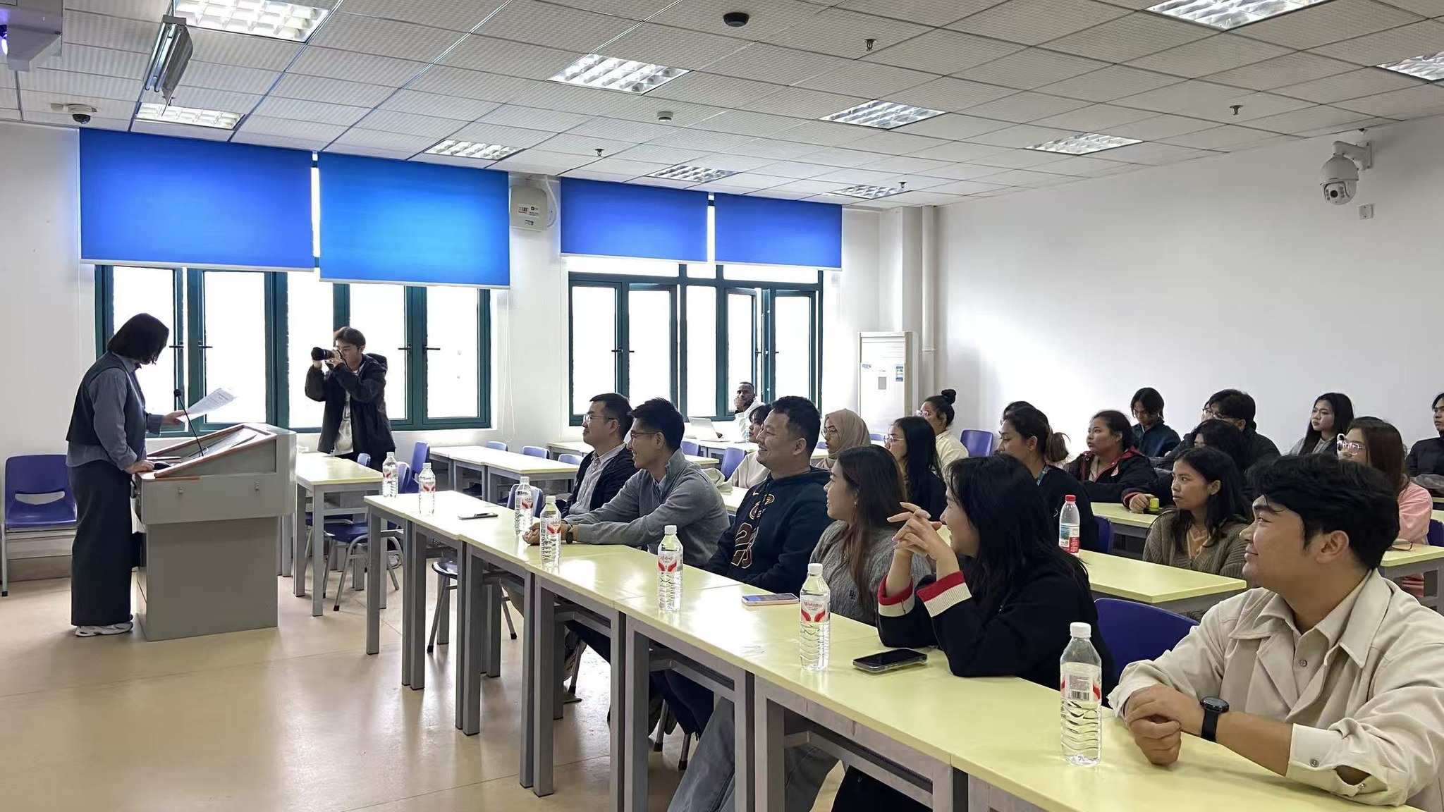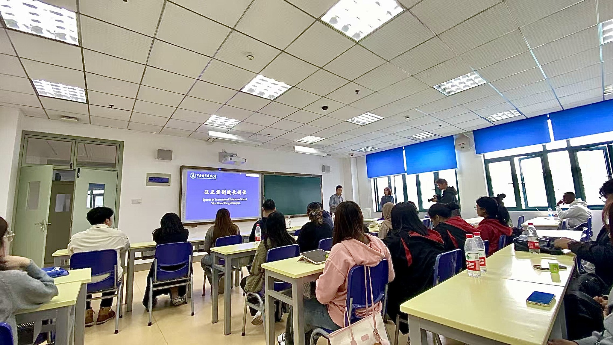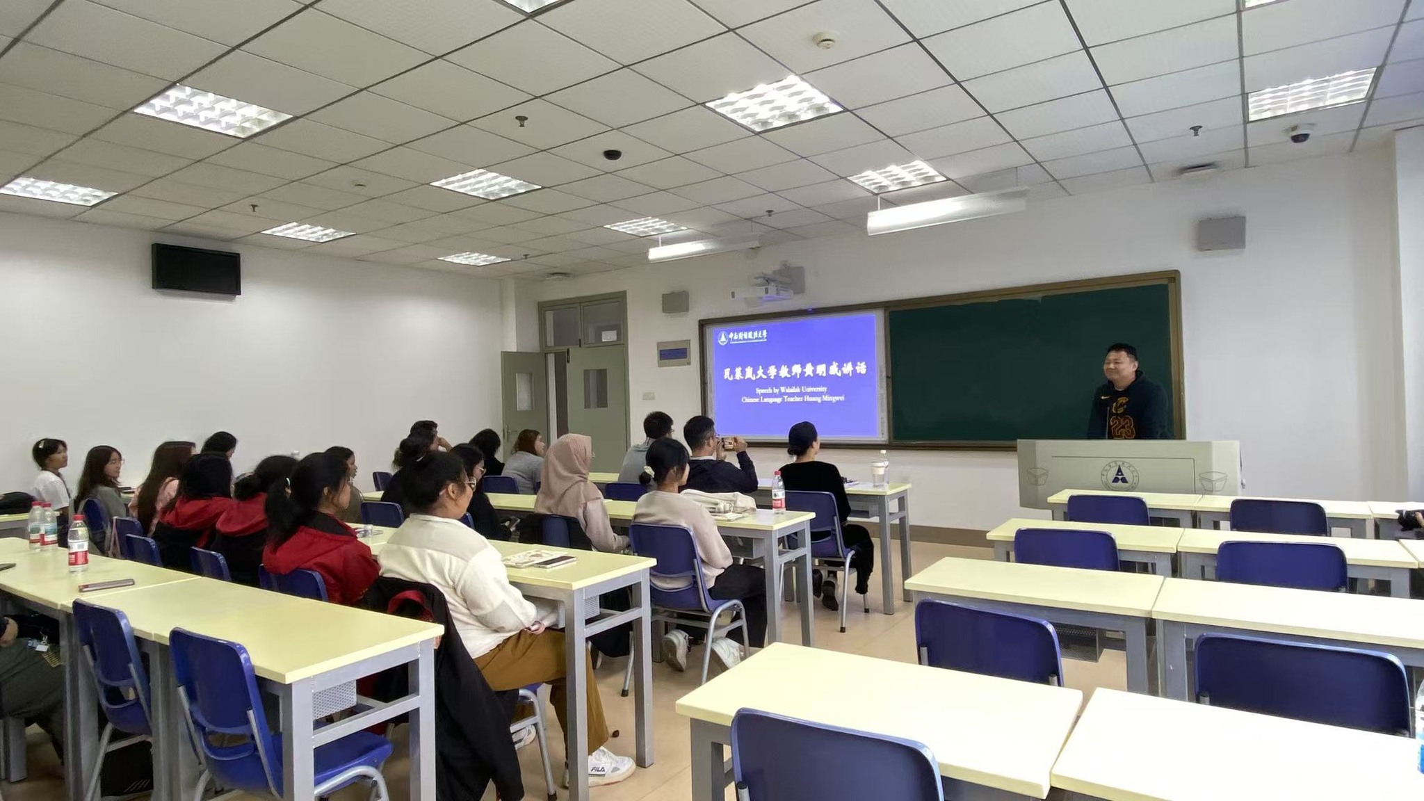 โดย อาจารย์วาง เจิ้งจวิน (Wang Zhengjun) รองคณบดี ได้กล่าวต้อนรับคณะอาจารย์และนักศึกษามหาวิทยาลัยวลัยลักษณ์ พร้อมทั้ง รศ.ดร.หนิว ฉางเหว่ย (Niu Changwei) หัวหน้าสาขาการสอนภาษาจีนเป็นภาษาต่างชาติ อาจารย์กาน เถียน (Gan Tian) หัวหน้าสาขาสำนักงานรับสมัครและพัฒนานักศึกษาต่างชาติ อาจารย์ ดร.เติ้ง เจิน (Deng Zhen) รองหัวหน้าสาขาการสอนภาษาจีนเป็นภาษาต่างชาติ อาจารย์จู หย่าเจี๋ย (Zhu Yajie) อาจารย์หลี่ จยาฉี (Li Jiaqi) และ อาจารย์จ้าว หาน (Zhao Han) ได้มาร่วมแลกเปลี่ยนประสบการณ์ด้านการเรียนรู้ วัฒนธรรม และแนะแนวการใช้ชีวิตในรั้วมหาวิทยาลัย นอกจากนี้ อาจารย์ Mingwei Huang อาจารย์หลักสูตรภาษาจีน และ นางสาวนภัสรา เรืองสีนุ่น ตัวแทนนักศึกษาชั้นปีที่ 3 มหาวิทยาลัยวลัยลักษณ์ได้ร่วมกล่าวและแลกเปลี่ยนความรู้สึก
