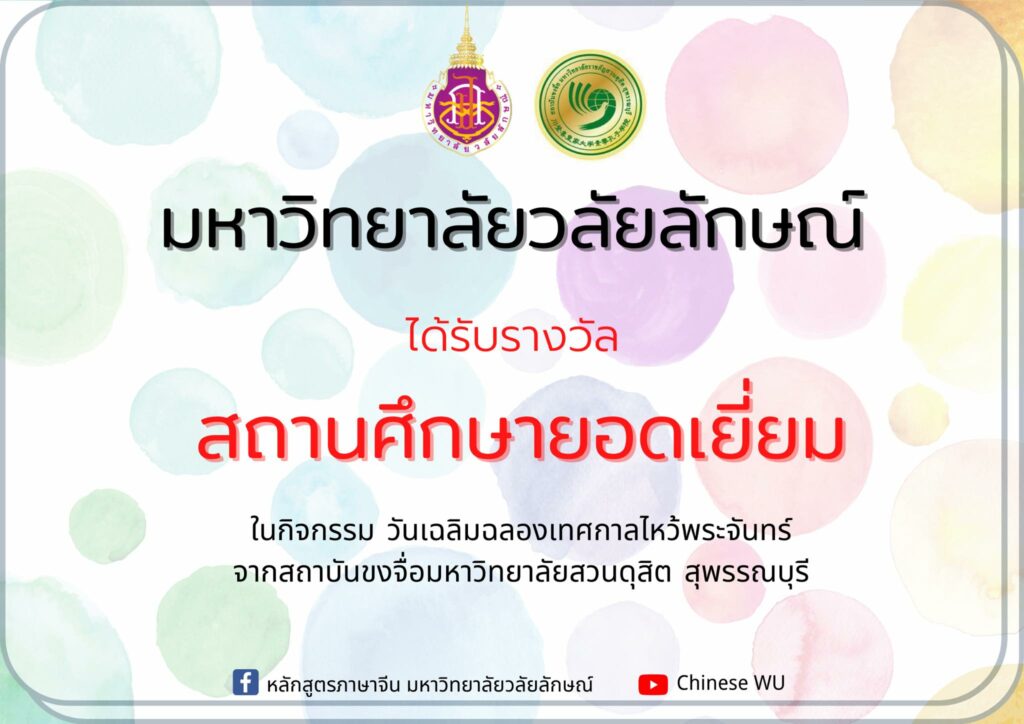 หลักสูตรภาษาจีนขอแสดงความยินดีกับนักศึกษาที่ได้รับรางวัล และขอเป็นกำลังใจให้แก่ผู้เข้าร่วมการแข่งขันทุกคน ตลอดจน