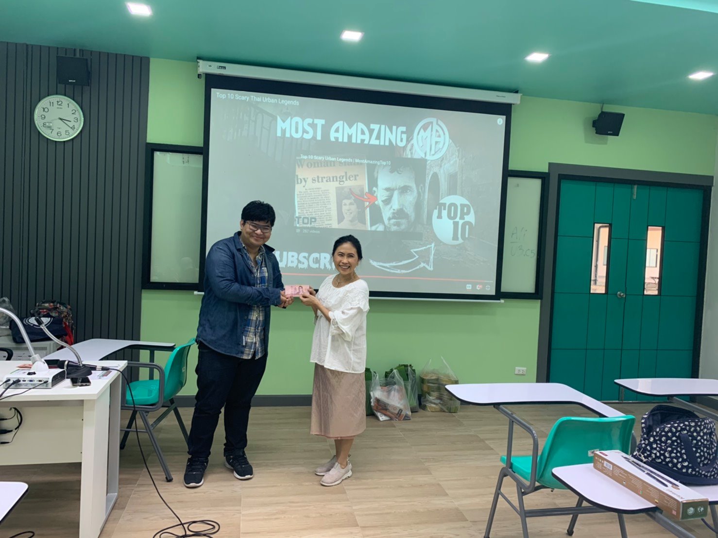 Since that day falls on Halloween the program, therefore, gave students the opportunity to watch a video comparing Thai and Western ghosts. And allow students to share their haunting experiences in English To hone students’ speaking and assertiveness skills. In addition, the curriculum integrates organizing activities together with the maintenance of Thai arts and culture. The first-year students and the second year students were divided into the Krathong competition using natural materials. In which the Krathong of Group 1 won the first prize After that, float the Krathong together at Lan Plearn Ta area. In front of the Thai Buri Building.