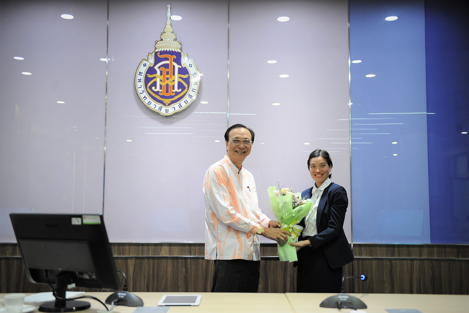 On 10 February 2021, before the Walailak University executive meeting 2/2021 commenced, Prof. Dr. Sombat Thamrongthanyawong, the president of Walailak University, presented bouquets at the Cooperative Building meeting room, Walailak University, to the lecturers who have been awarded the UKPSF certificate.