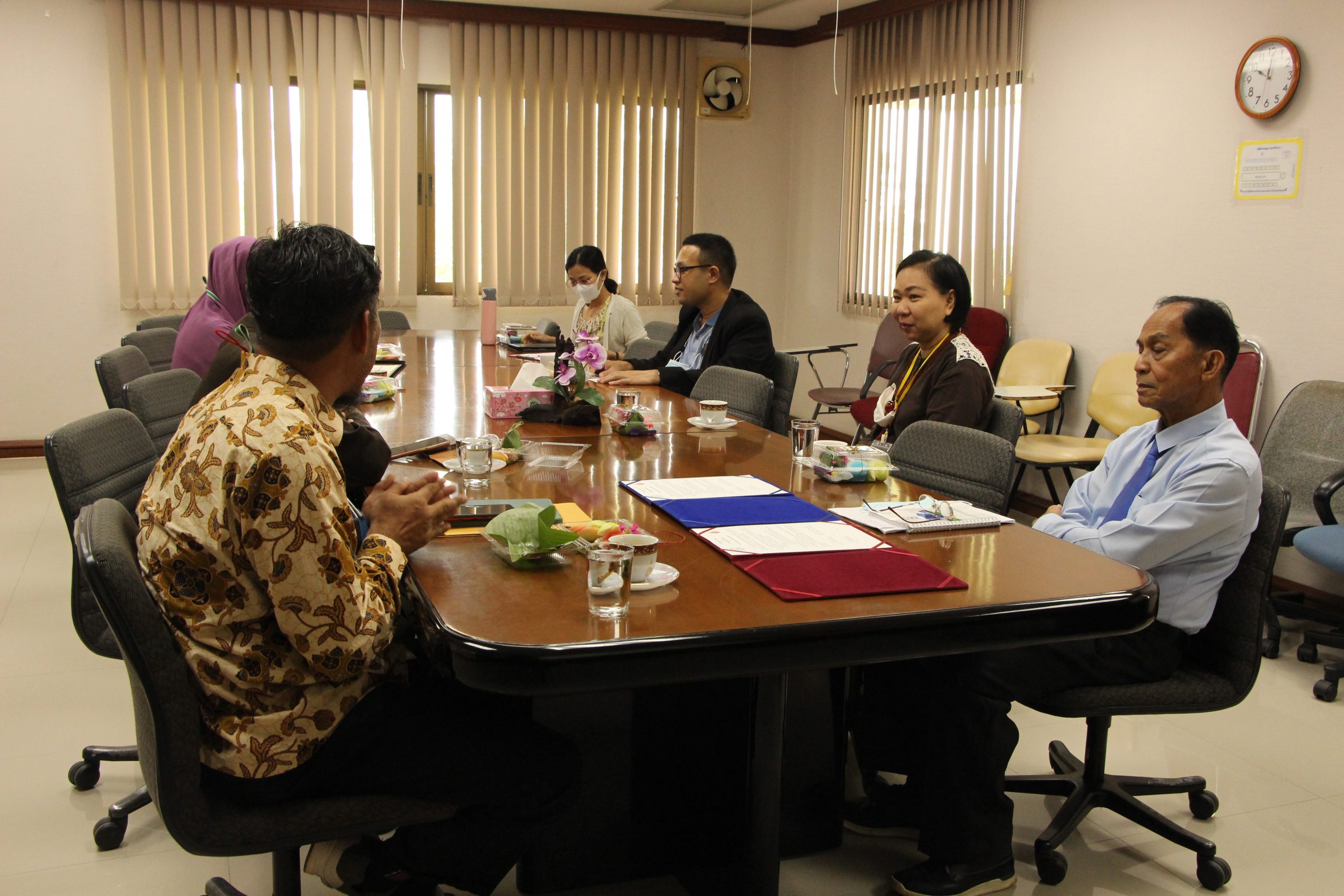 The administrative delegates from Santitham Foundation School were Ajarn Nopparat Sumalee (The Director), Ajarn Sunee Sumalee (Assistant Director), Ajarn Chagirine Sumalee (Manager), Ajarn Suchada Ar-Ait (Head of Foreign Languages) and Ajarn Vilawan Jaymusa (Head of the Thai Language). This academic collaboration is a great start between the two institutions to develop systematic education, as good preparation of secondary students today will positively influence their studies in the university.