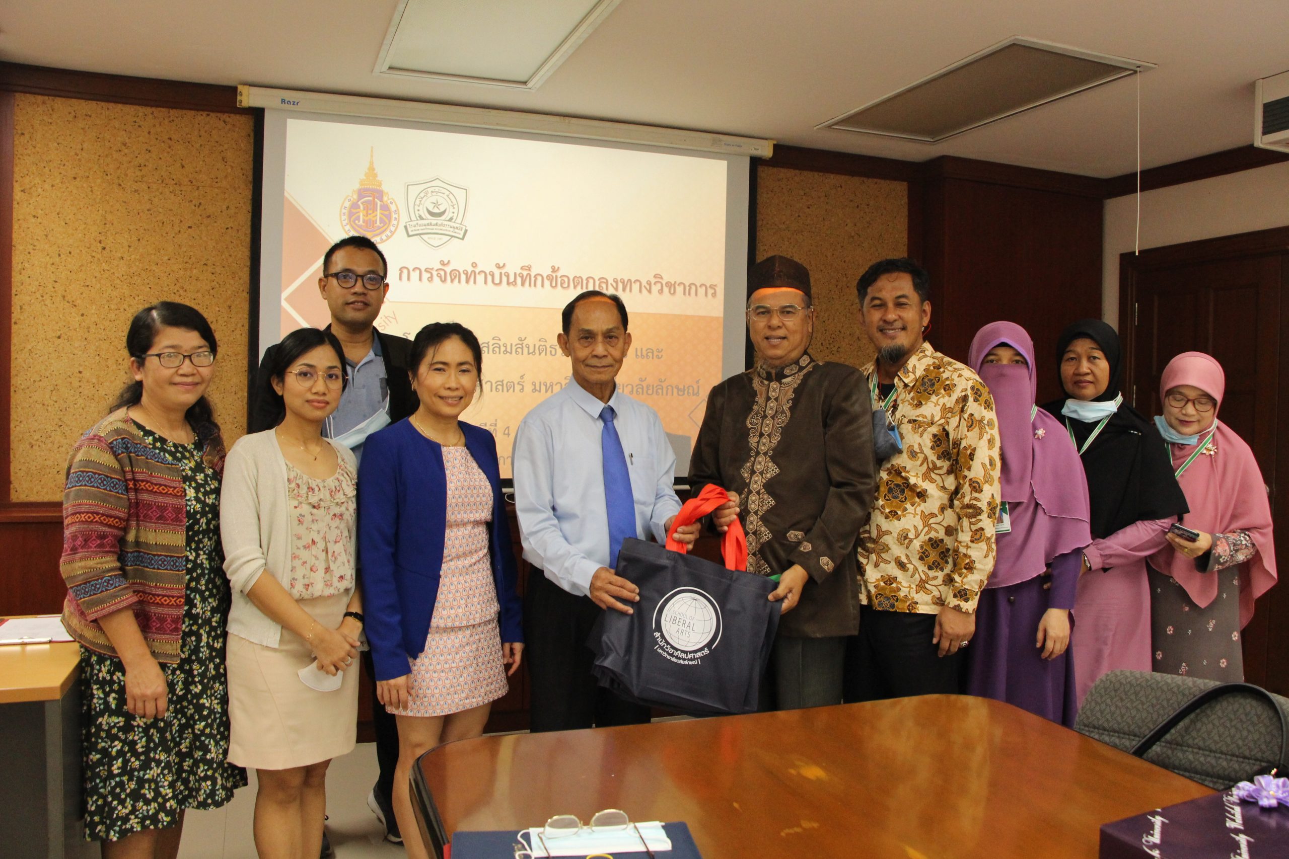 Muslim Santitham Foundation School is considered as a large private school in Nakhon Si Thammarat Province. Currently, teaching from kindergarten to high school is under the highly academic leadership of the School’s management team. The School is also committed to continuously enhance academic quality and that is an essential reason for the collaboration this time. In addition, this MOA has related to the School of Liberal Arts’ identity which is “Mastery of Language, Multi-Knowledge, and Benefit to Society”.