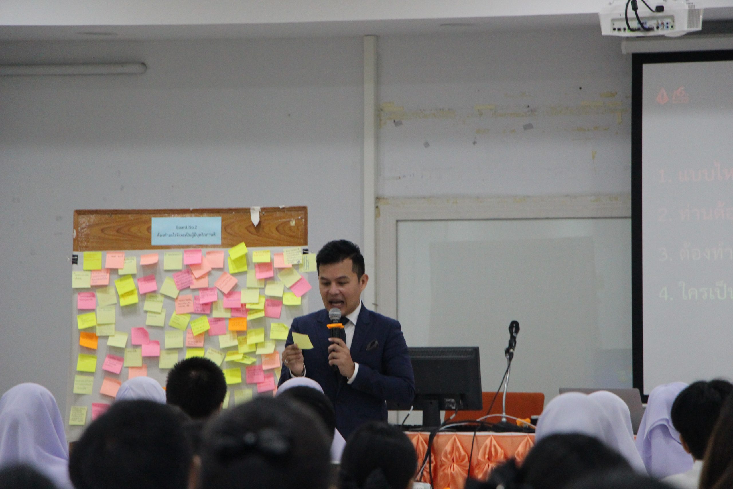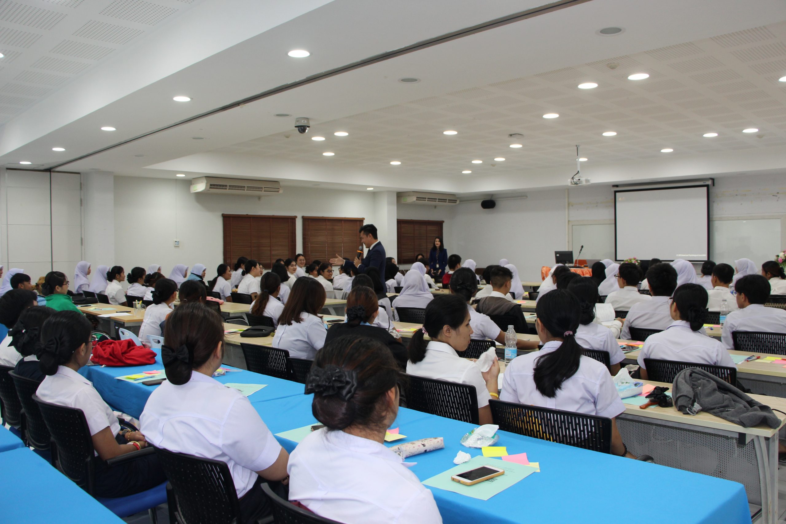 Surprisingly, there were 130 participants joined this activity including students, lecturers and university staff. Basically, an objective was to encourage the students to have good personality, be reliable person and smart leader in the society. Moreover, the personality development class would definitely help them to be more confident when going outside as well as teach them with an appropriate manner when they are living with other people in the society.
