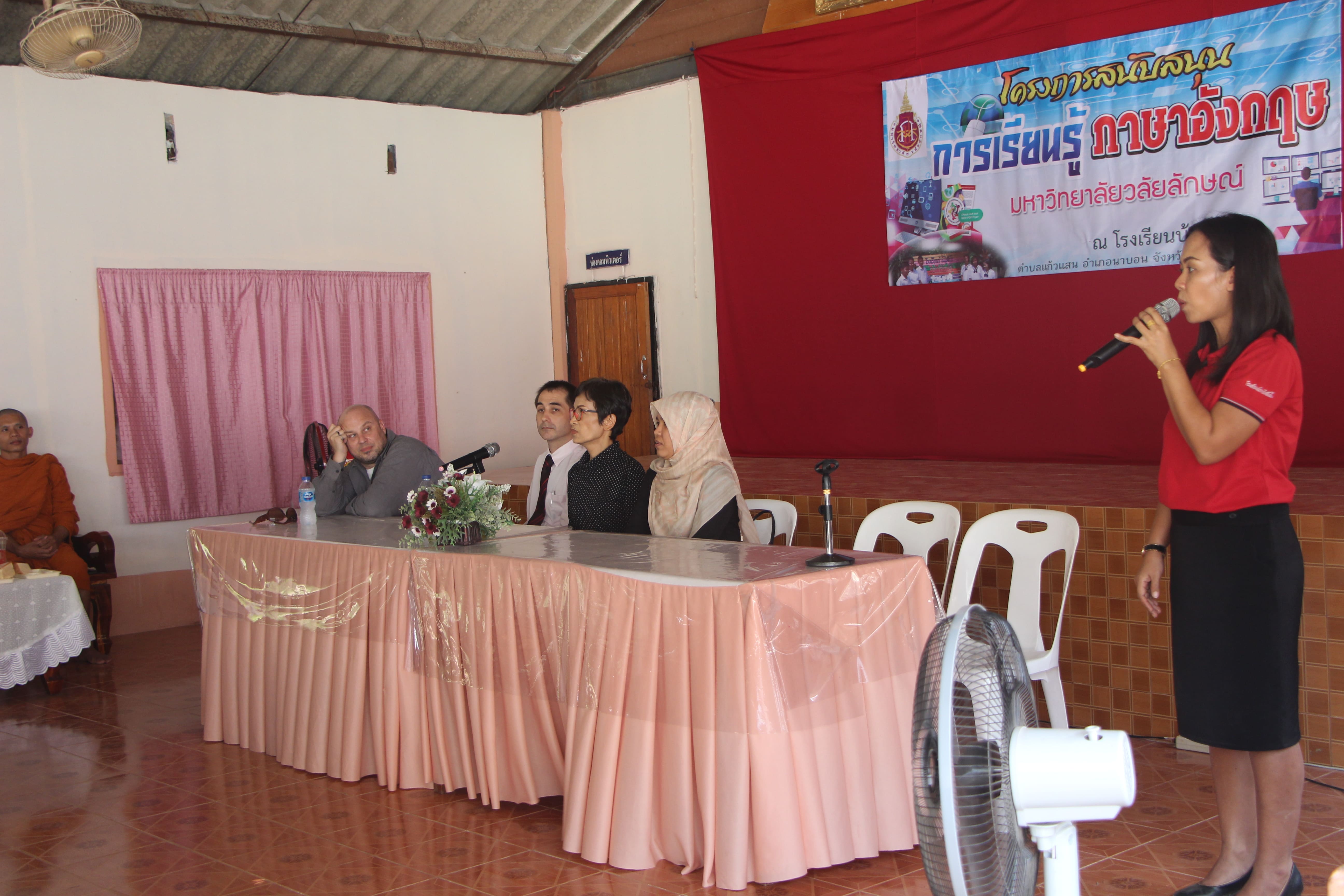 คณาจารย์และนักศึกษาชั้นปีที่ 4 หลักสูตรภาษาอังกฤษ รายวิชา EFL-410 Senior Project จำนวน 90 คน ได้ลงพื้นที่เก็บข้อมูลการทำสื่อการเรียนออนไลน์ประกอบการเรียนการสอนภาษาอังกฤษ ณ โรงเรียนบ้านไสโป๊ะ อ.นาบอน จ.นครศรีธรรมราช โดยได้รับเกียรติจากนางสุกฤตา วิษณุพงษ์พร ผู้อำนวยการโรงเรียนบ้านไสโป๊ะ และคณะกรรมการสถานศึกษา กล่าวต้อนรับคณาอาจารย์และนักศึกษา พร้อมพูดคุยแลกเปลี่ยนแนวทางการจัดการเรียนการสอนของโรงเรียน