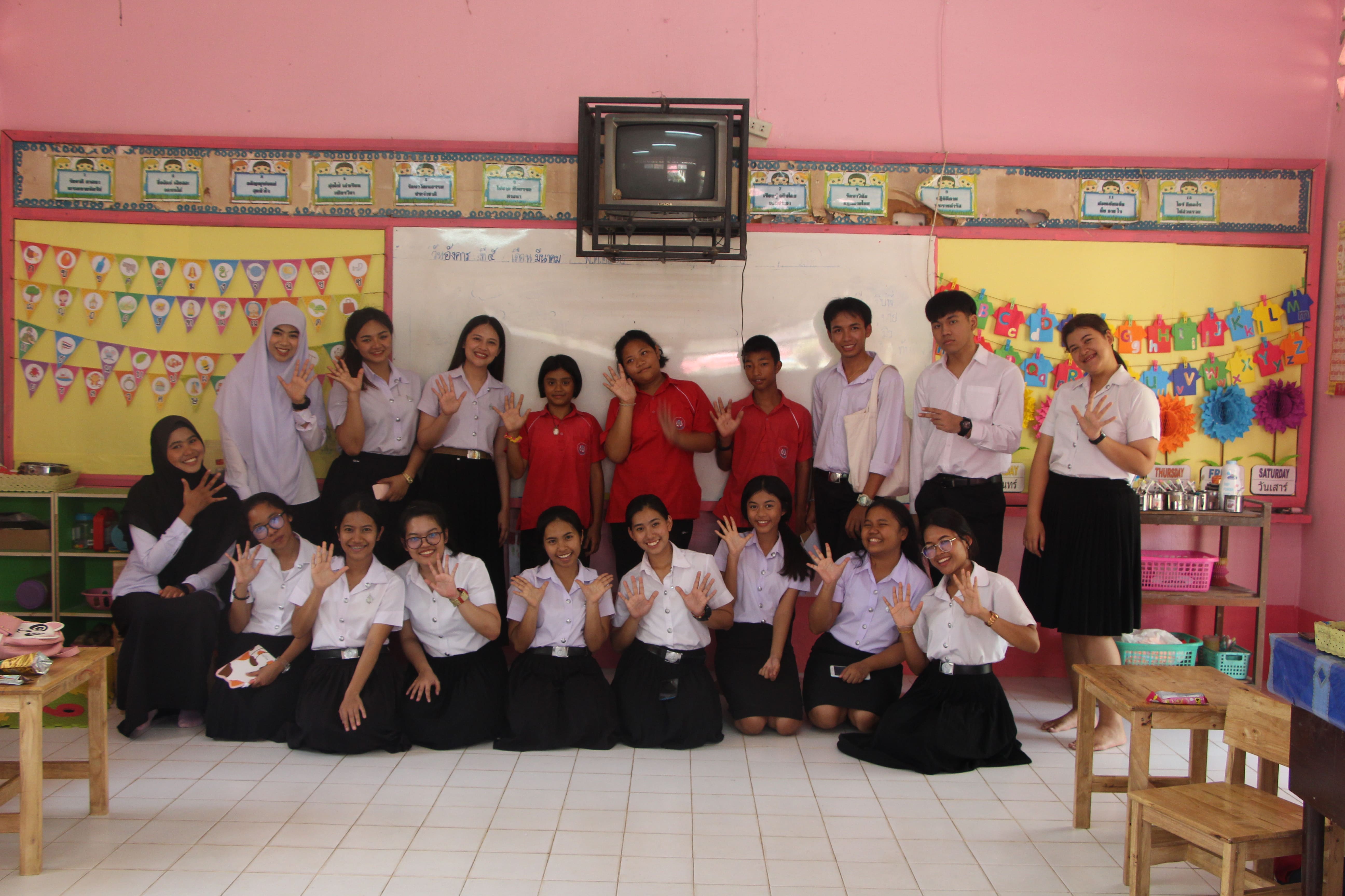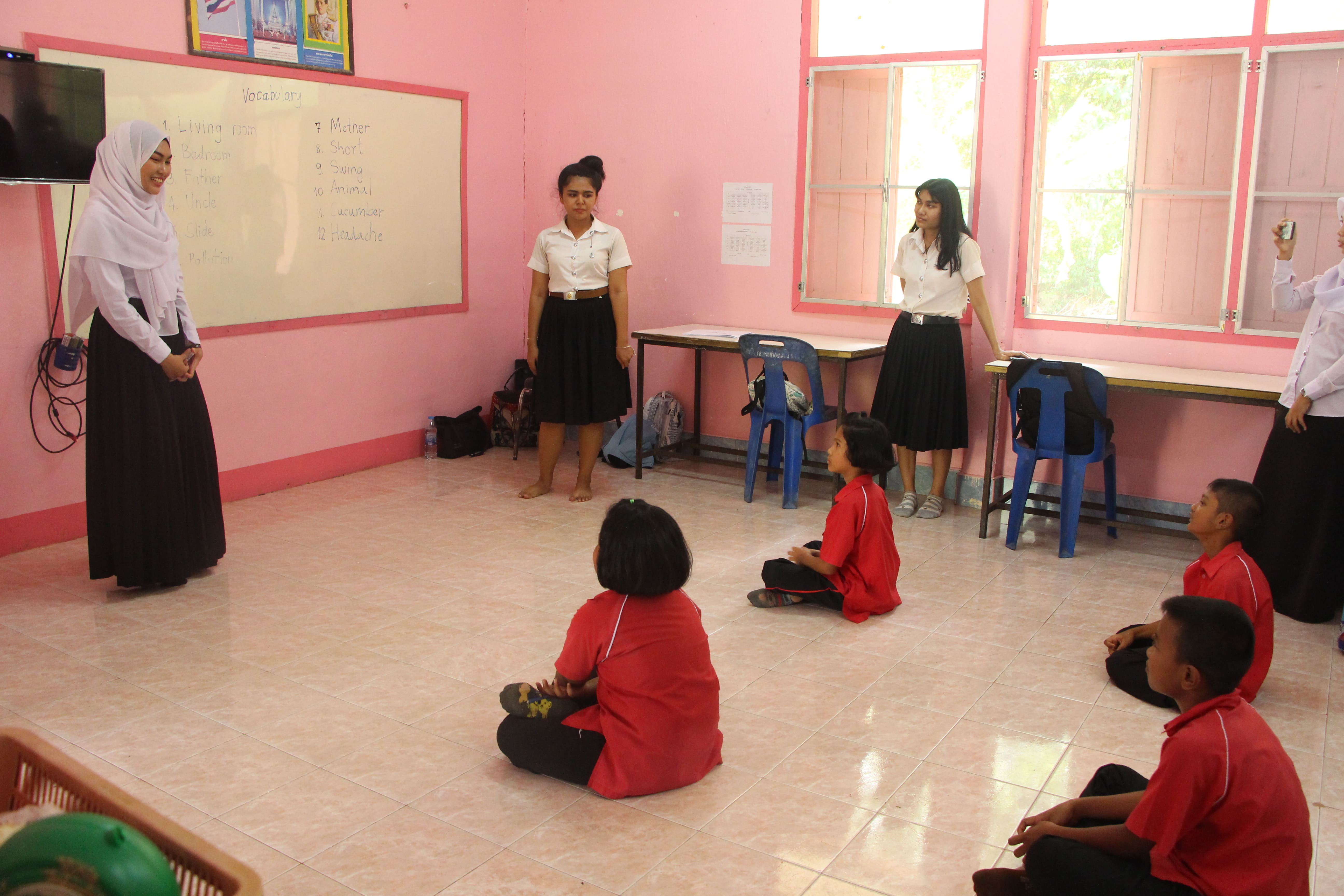 ทั้งนี้ นักศึกษาได้พูดคุยแลกเปลี่ยนประสบการณ์การสอนกับคุณครูประจำชั้นเกี่ยวกับประเด็นปัญหาการจัดการเรียนการสอนภาษาอังกฤษชั้นปฐมวัย และทำกิจกรรมร่วมกับนักเรียนโรงเรียนบ้านไสโป๊ะ