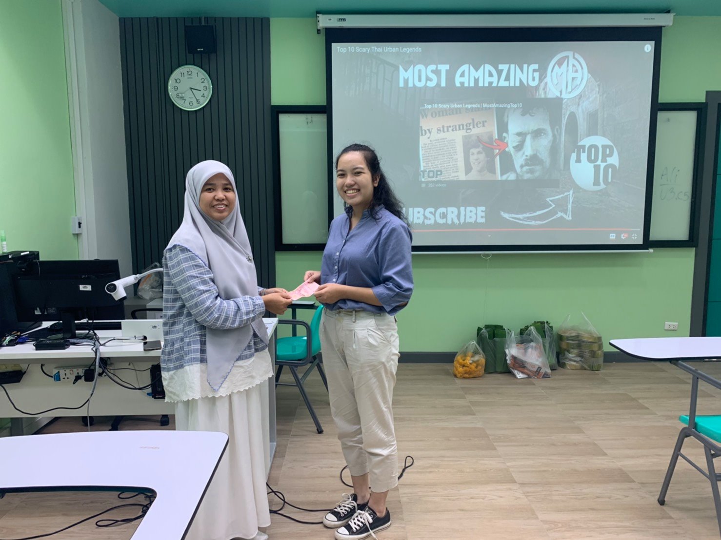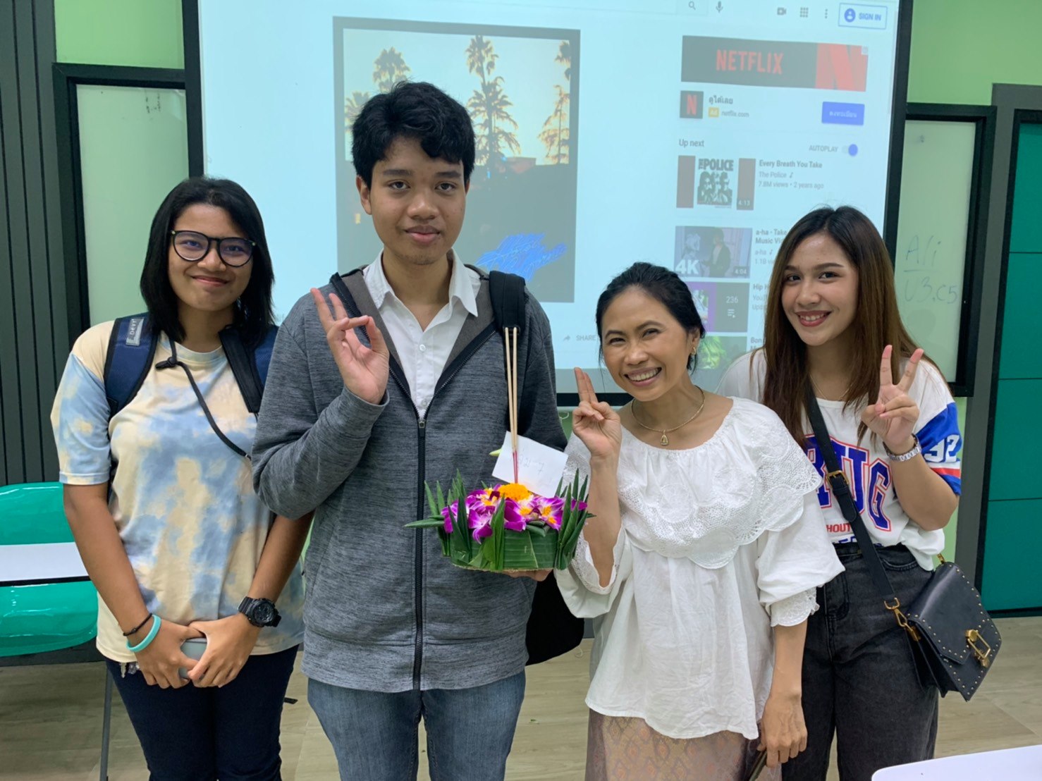 เนื่องจากวันดังกล่าวตรงกับวันฮาโลวีน หลักสูตรจึงได้เปิดโอกาสให้นักศึกษารับชมวีดีทัศน์เปรียบเทียบระหว่างผีไทยและผีฝรั่ง และให้นักศึกษาได้เล่าประสบการณ์หลอนของตนเองเป็นภาษาอังกฤษ เพื่อฝึกฝนทักษะด้านการพูดและความกล้าแสดงออกของนักศึกษา นอกจากนี้ หลักสูตรฯ ยังได้บูรณาการการจัดกิจกรรมควบคู่กับการบำรุงศิลปวัฒนธรรมไทย โดยแบ่งกลุ่มนักศึกษาชั้นปีที่ 1 และชั้นปีที่ 2 แข่งขันประดิษฐ์กระทงโดยใช้วัสดุจากธรรมชาติที่กำหนดให้ โดยกระทงของกลุ่มที่ 1 ได้รับรางวัลชนะเลิศ หลังจากนั้นจึงนำกระทงไปลอยร่วมกัน ณ บริเวณลานเพลินตา หน้าอาคารไทยบุรี