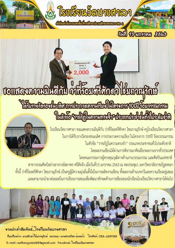 ศิษย์เก่าหลักสูตรภาษาไทย คว้ารางวัลความเรียงระดับชาติ